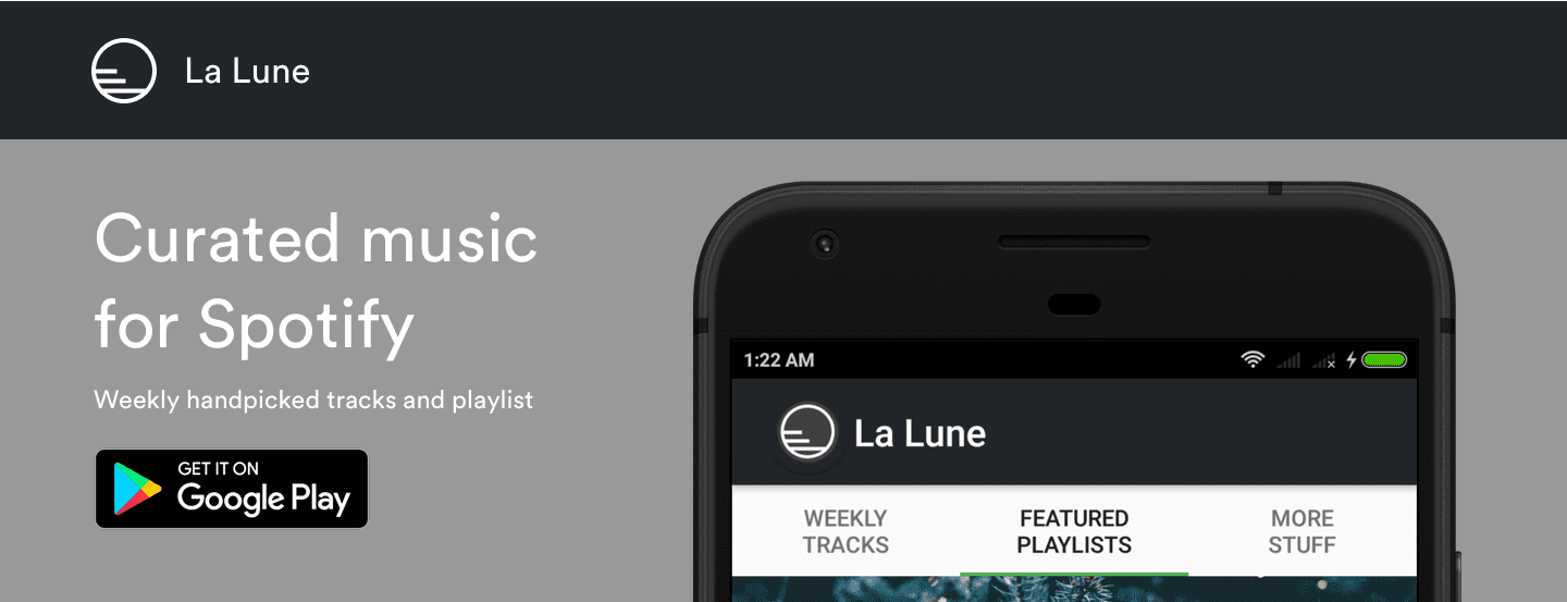 Curated Spotify music and playlists app for Android that plays music directly from Spotify through spotify-sdk with a REST API Backend to store playlists and songs made in Node.js, Express and MongoDB